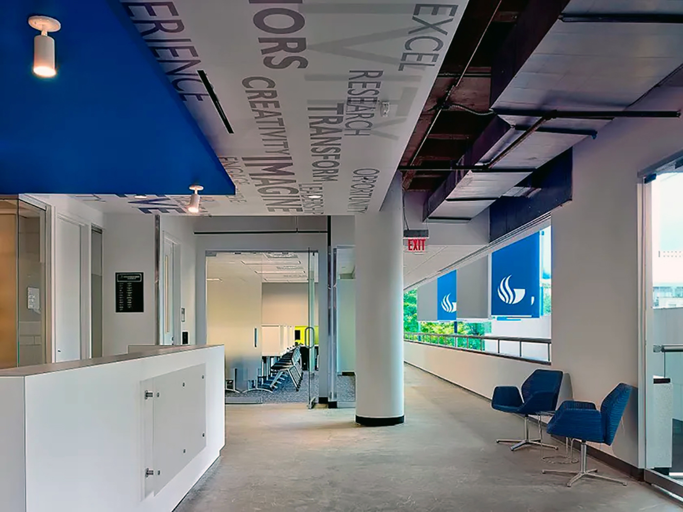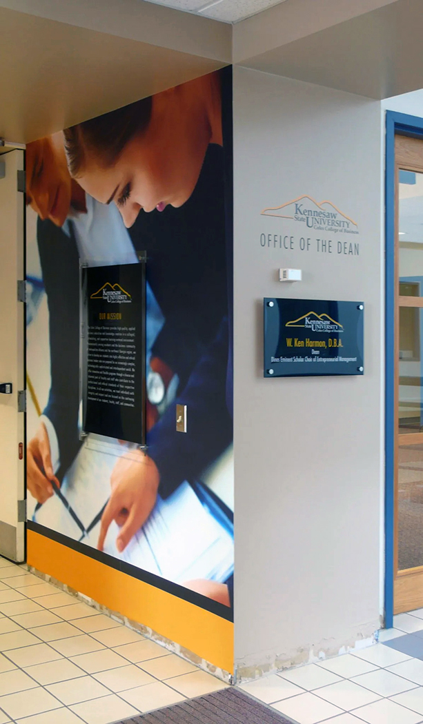 Imagine transforming your hallways into dynamic spaces that breathe life into the learning environment, creating an atmosphere that fosters enthusiasm among students, especially as they return to in-person learning. We understand the pivotal role that engaging design plays in the educational experience, and we're here to help you make a lasting impact. Harness the power of existing spaces by incorporating Academic and Education messaging through a variety of mediums. Our expertise extends to creating captivating murals that tell a story, banners that make a statement, column wraps that showcase your institution's identity, and window graphics that communicate your values. These elements collectively contribute to a visually stimulating campus that not only educates but also inspires. Whether you're looking to guide students seamlessly through your campus with wayfinding solutions or create a dynamic environment for special events, our team is equipped to bring your vision to life. We prioritize attention to detail and customization, ensuring that each design element aligns with your institution's unique identity and values. In this age of visual communication, we recognize the significance of creating an aesthetically pleasing and purposeful educational space. Let us partner with you to enhance your campus, boost morale, and provide an inspiring backdrop for the academic journey. Together, let's transform spaces into vibrant hubs of learning and creativity.
